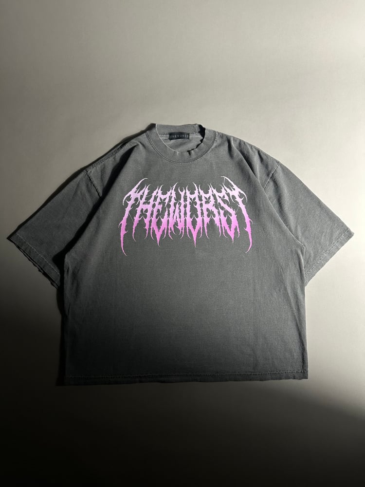 PURPLE GOTHIC CROSS “OVERSIZED” DROP SHOULDER TEE IN VINTAGE BLACK